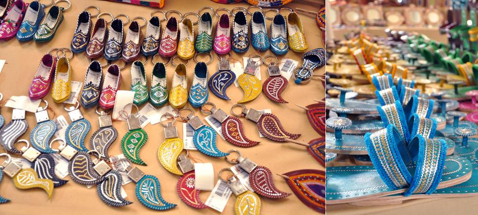 The craft itself involves distinct techniques like Jari Kaam and Torni. Jari Kaam intricately employs silver and golden Jari to fashion intricate designs, while Torni weaves colourful patterns on leather goods. The dyeing process using local dyes further accentuates the craft’s uniqueness.